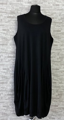 Czarna sukienka bez rękawów, uszyta z wygodnego i miękkiego materiału bawełnianego. Sukienka z efektownym, szerszym dołem i z delikatnie dłuższym tyłem, z kolekcji włoskiej marki Moonshine Fashion.