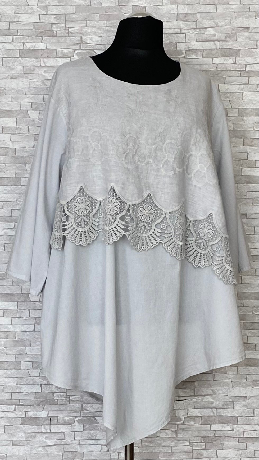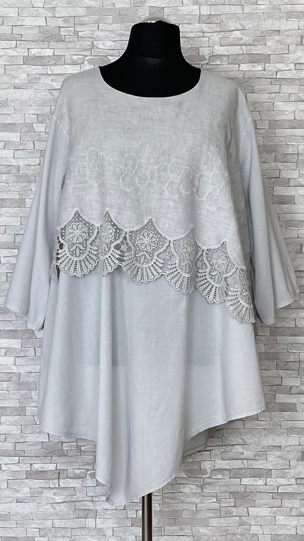 bawełniano lniana tunika moonshine mode z haftowaną koronkąBawełniano-lniana tunika Moonshine Mode z haftowaną koronką