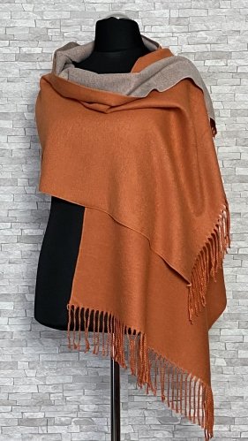 ciepły, dwustronny szal damski z domieszką wełnyCiepły, dwustronny szal damski z domieszką wełny