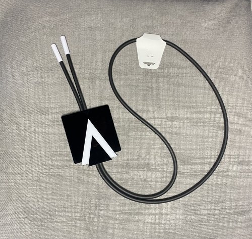 Czarno-biały wisior na czarnej, biżuteryjnej gumie