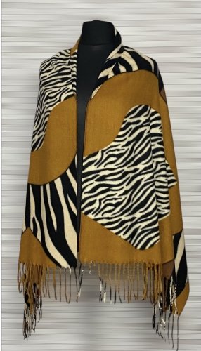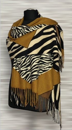 Duży, ciepły i przyjemny w dotyku szal damski z frędzlami.