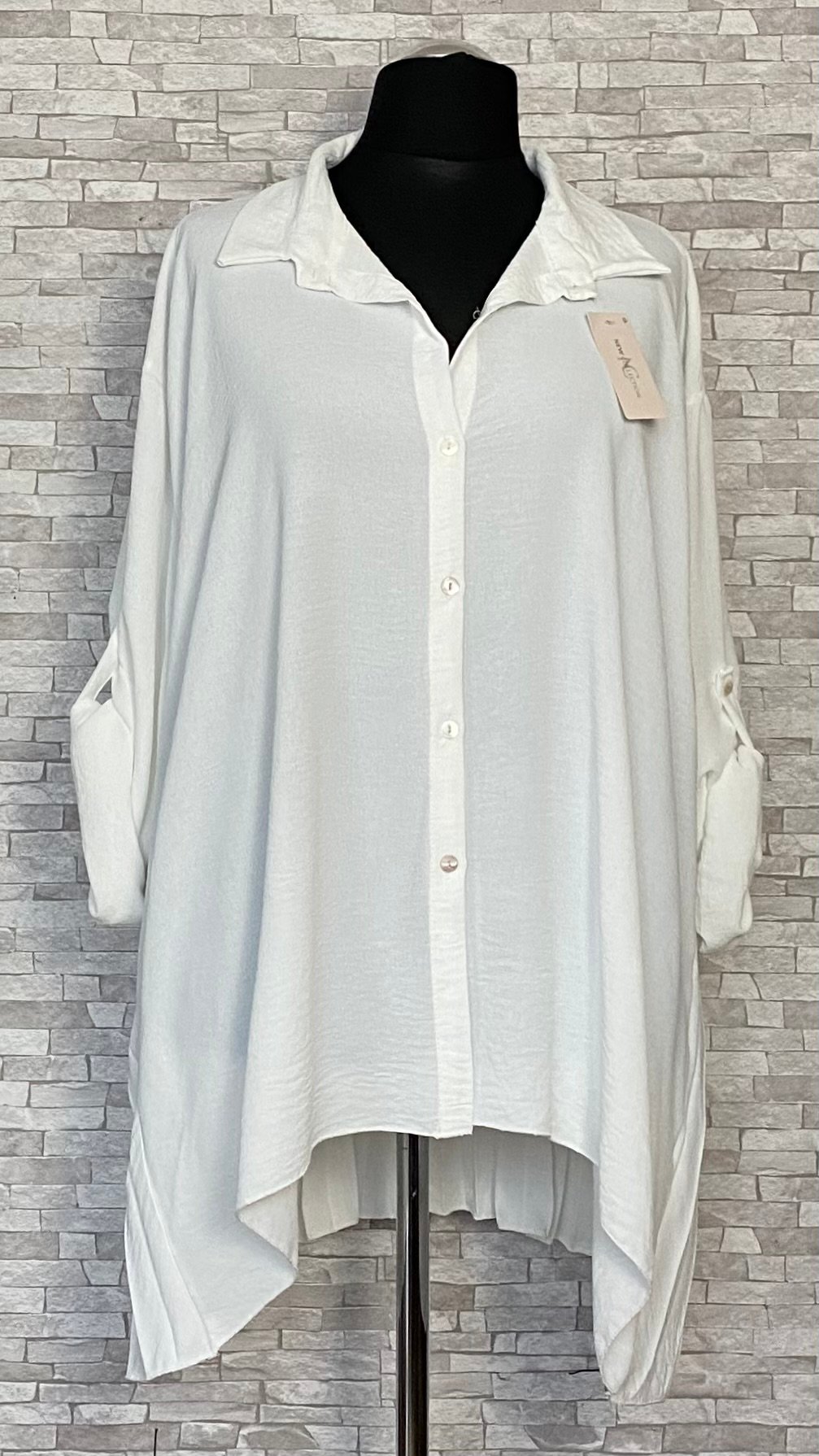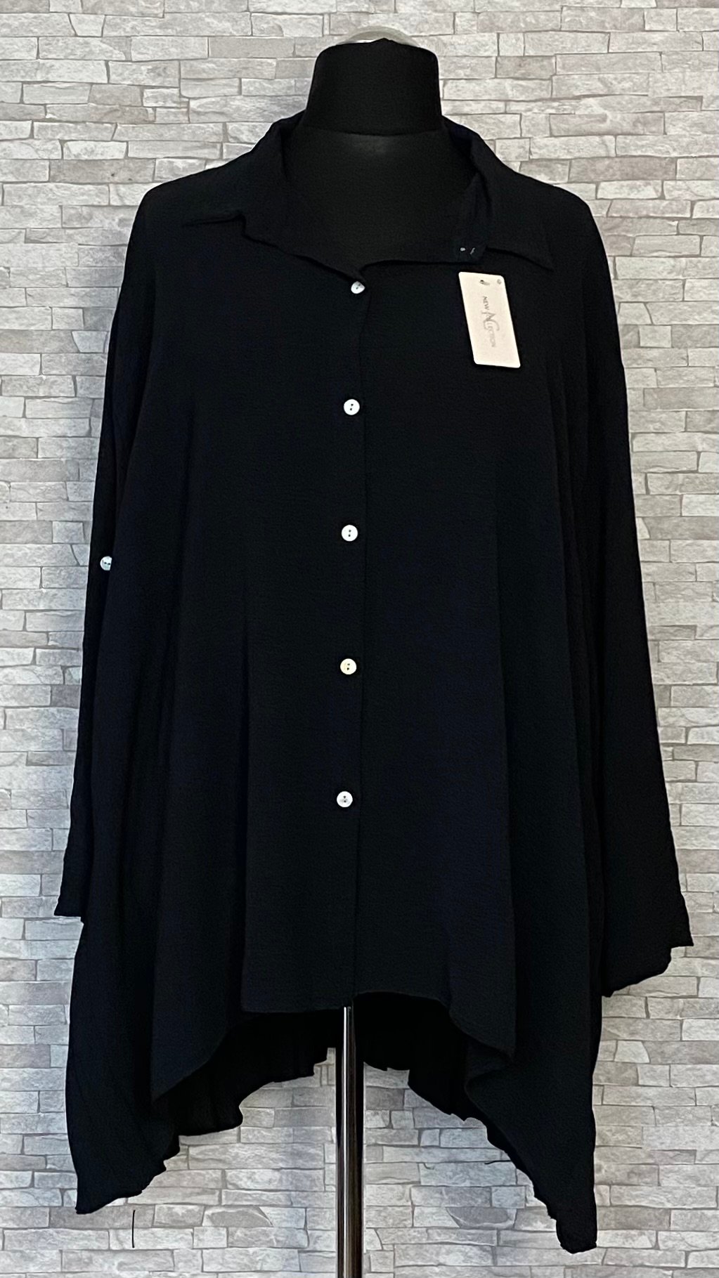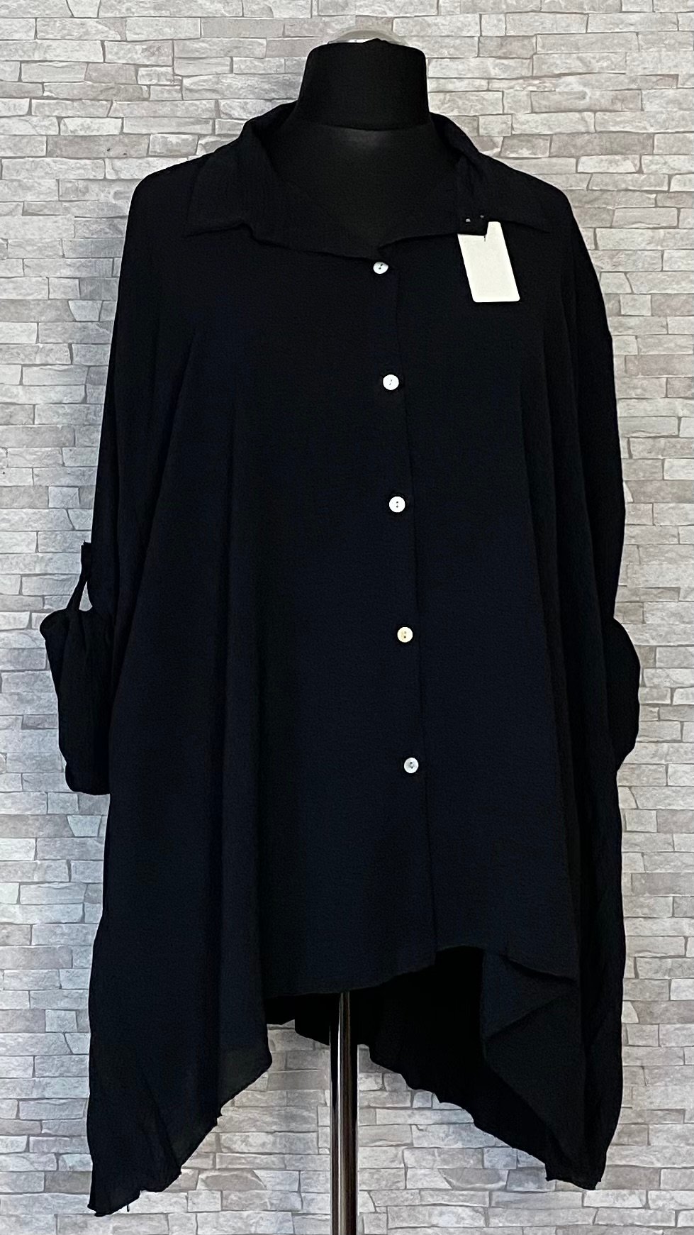 Tunika damska wykonana z miękkiego, wygodnego materiału wiskozowego. Rozpinany model o kroju litery A łączy swobodę noszenia z eleganckim charakterem. Tunika posiada kołnierzyk oraz efektowny, plisowany tył, który stanowi stylowy akcent i nadaje całości lekkości. Model z długimi rękawami z możliwością podpięcia oraz delikatnie dłuższym tyłem, idealny do codziennych i bardziej eleganckich stylizacji.