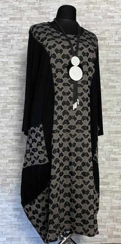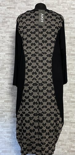 Elegancka sukienka z kieszeniami, uszyta z wygodnego i wysokiej jakości materiału wiskozowego, z domieszką poliestru i elastanu. Model z długimi rękawami i szerszym dołem, z kolekcji marki AKH Exclusive Fashion Germany.