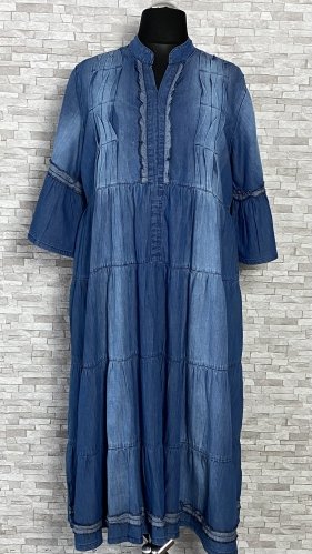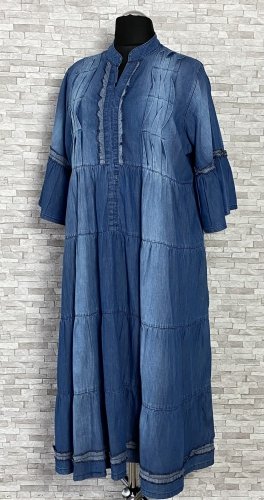Efektowna sukienka w kolorze jeans, uszyta z wygodnego i wysokiej jakości materiału bawełnianego. Sukienka o kroju litery A, z dekoltem w kształcie litery V i z rękawami długości 3/4, z kolekcji marki La Bass Germany.
