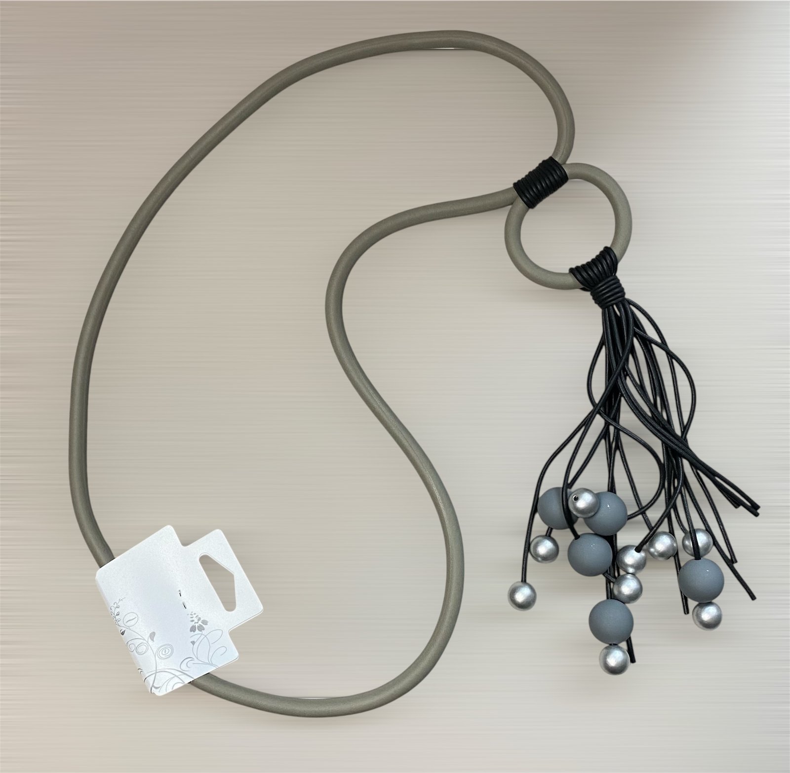 Wisior na biżuteryjnej gumie w kolorze fango