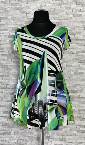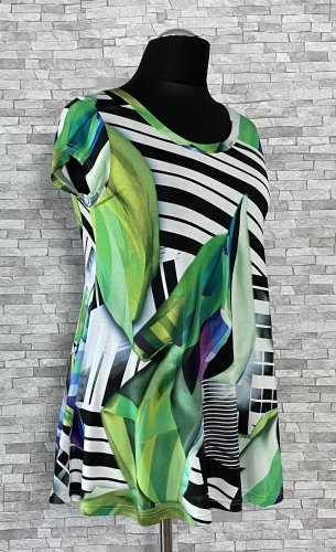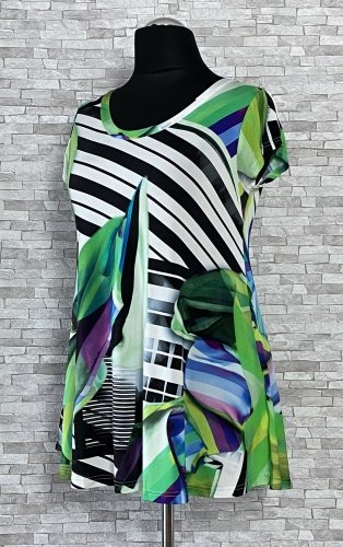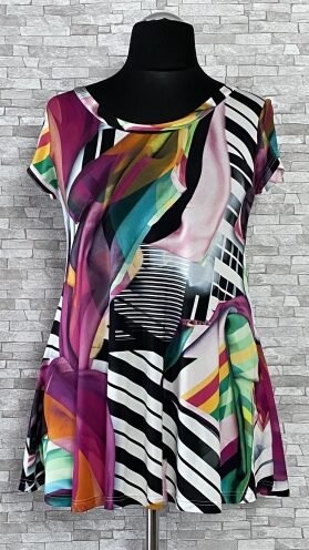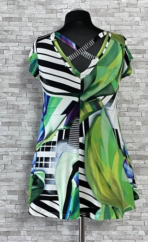 Bluzka damska o kroju litery A, z efektownym dekoltem na plecach. Model z krótkimi rękawami, uszyty z wygodnego i wysokiej jakości materiału wiskozowego ze stretchem.