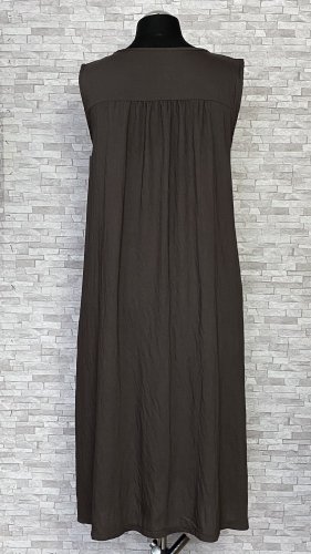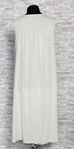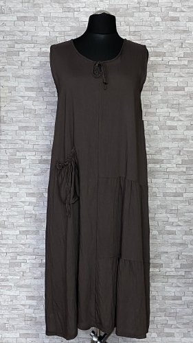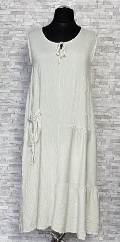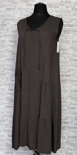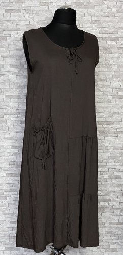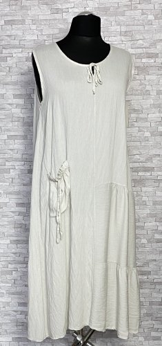 Sukienka bez rękawów, z wiązaniem przy dekolcie, uszyta z wygodnego i miękkiego materiału wiskozowego. Model o kroju litery A, z kieszenią na przodzie. Sukienka z odcięciem na karku, delikatnie marszczona.